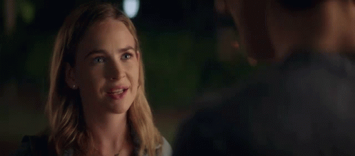 Britt Robertson as Melissa Henning looks at a man and says 'Okay, it's true!' in a dramatic moment.