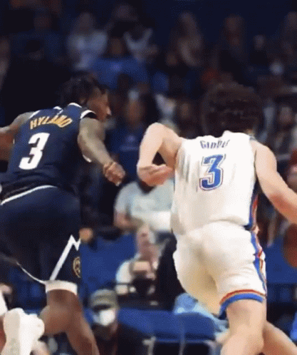 Josh Giddey of OKC Thunder in action during a basketball game, featuring Muscala and Hyland.