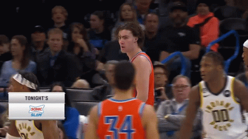Josh Giddey of the Oklahoma City Thunder on the court, with Shai Gilgeous-Alexander also present.