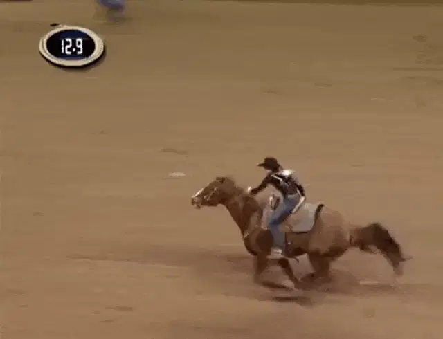 Oklahoma State's mascot, Bullet, gallops onto the football field on a black horse, waving a flag to cheering fans.