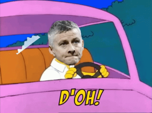 Ole Gunnar Solskjaer's face superimposed on Homer Simpson driving, exclaiming 'D'OH!' in a meme.
