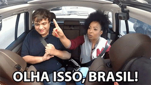 Diguinho e Juliana Oliveira no carro, com a legenda 'Olha Isso, Brasil!' e Juliana apontando.