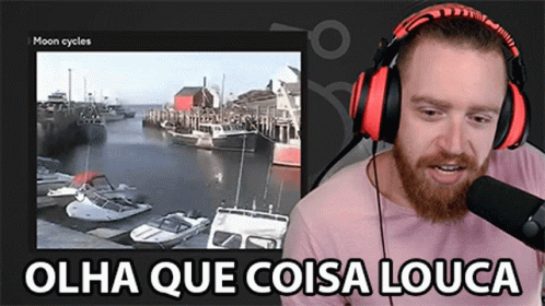 Lubatv reacts to an incredible time-lapse of moon cycles causing extreme tides in a harbor, exclaiming 'Olha Que Coisa Louca'.