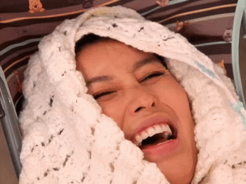 Olivia Sui makes a hilarious expression while covered by a Winnie the Pooh blanket, likely from a Smosh video.