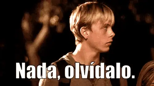 A black and white sign displaying the Spanish word 'Olvidalo', which translates to 'Forget it'.
