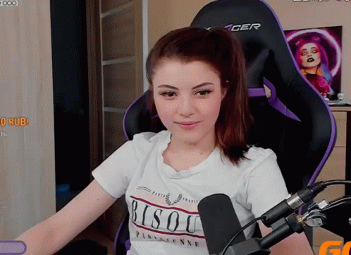 Olyashaasaxon Olyashaa reacts with a loud 'BAAAN!!!' while sitting in her gaming chair.