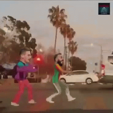 Mitroglou, Payet, and Thauvin's funny dancing meme on a street with palm trees.