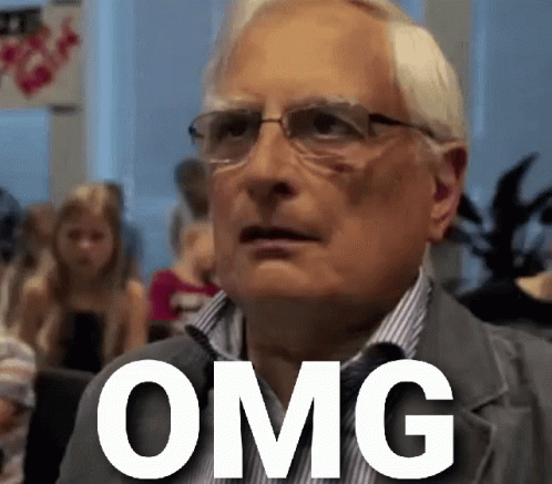 A man with glasses reacts with surprise, covering his mouth, with 'OMG' text overlay.