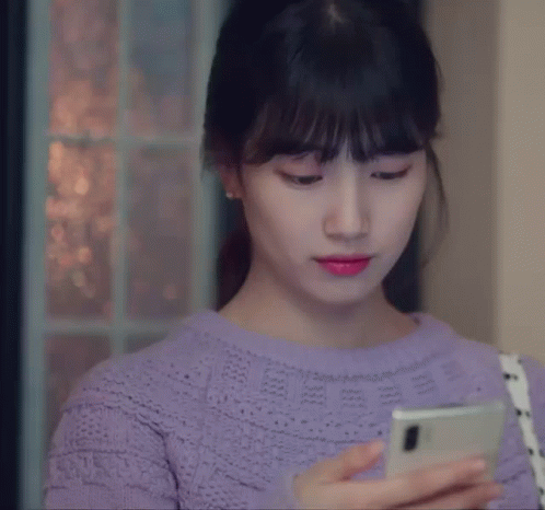 Bae Suzy's 'Omo' meme moment from a Korean drama, as she looks at her cell phone.