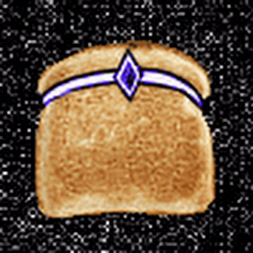 A pixelated slice of toast adorned with a purple diamond headband, representing Omori's Spaceboy.