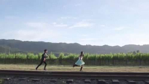 James Reid and Nadine Lustre run along train tracks through a vineyard, a scene from On The Wings Of Love.