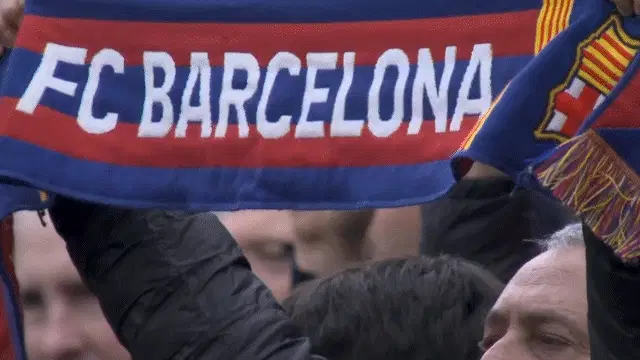 loadingFC Barcelona Fan Holding Scarf Proud Culers Celebration