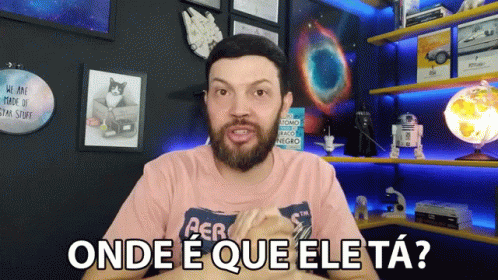 Schwarza, wearing a pink shirt, gestures expressively while asking 'Onde É Que Ele Tá? Where Is It?'