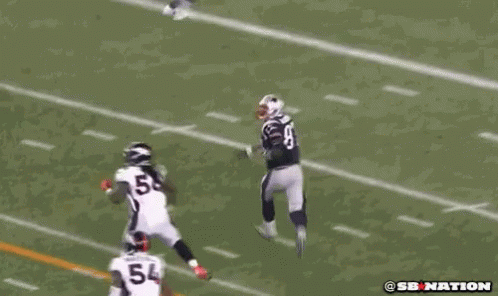 An incredible one-handed catch by a New England Patriots player during an NFL football game.