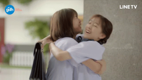 Two girls from 'One Year The Series' share an excited, happy hug, celebrating a moment of joy.