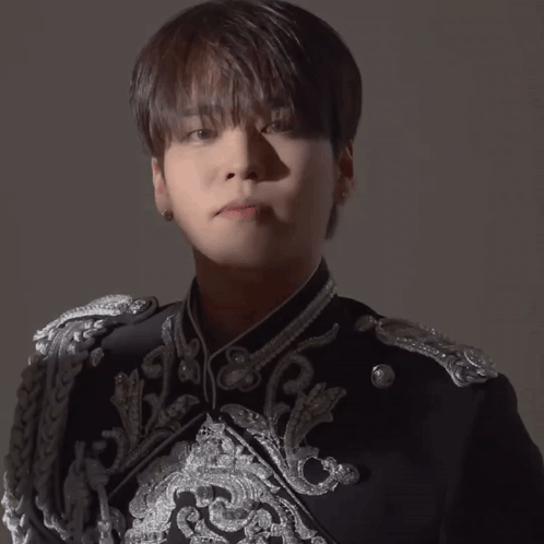 Onf U member Yuto winks at the camera, looking cute in an embellished jacket.