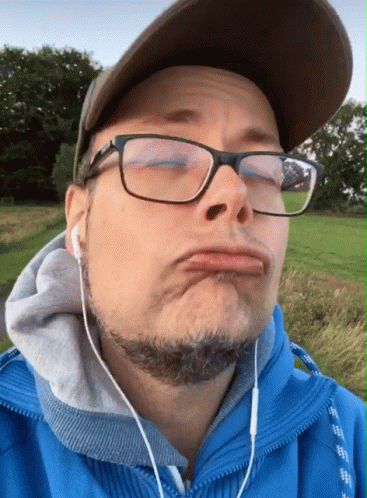 Alex, known as Oniondog, makes a funny face while wearing glasses and earbuds outdoors.