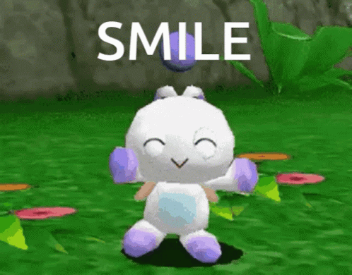 Smiling Chao from Sonic Adventure in a grassy garden with 'SMILE' text. Associated with Oomfie Twitter, Birdy, Mya, Zeren, Nurhaci, Theuwubomber, Paultown.