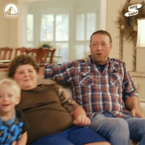 A man from the Mullis Family reacts with shock and surprise during an intense moment on Wife Swap.