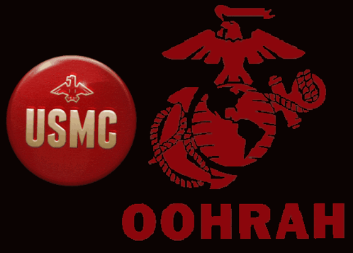 USMC logo with a red button and the word 'OORAH' displayed in gold lettering.