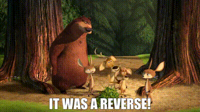 Elliot and other Open Season 3 characters in the forest with the caption 'IT WAS A REVERSE!'