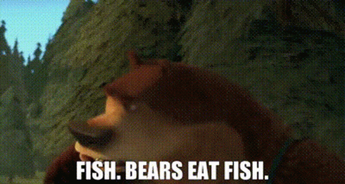 Boog the bear from Open Season emphatically states that bears eat fish.