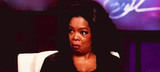 Oprah Winfrey reacts with a surprised and slightly disgusted expression, making a funny face.