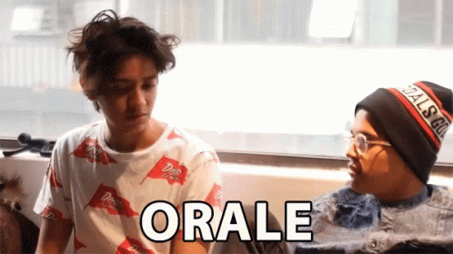 Two young men, including Harold Benny, are sitting together with the word 'ORALE' displayed.