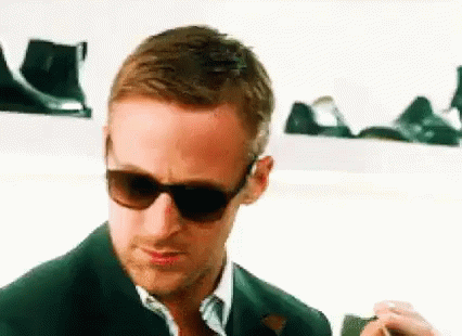 Ryan Gosling, wearing sunglasses and a suit, looks on with a proud and serious expression, stating 'Sono Orgoglioso'.