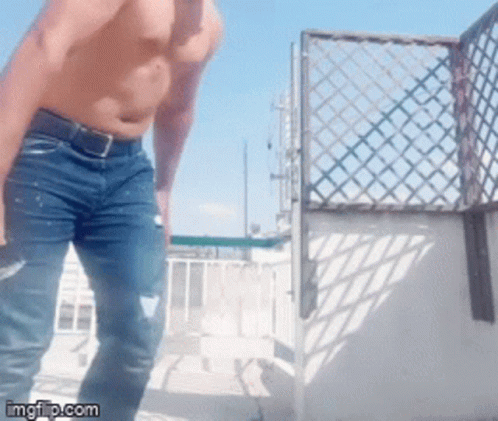 Kostas Otrelos attempts pushups on a balcony, resulting in a fall, with the Greek word "ΟΡΙΣΤΕ" appearing on screen.