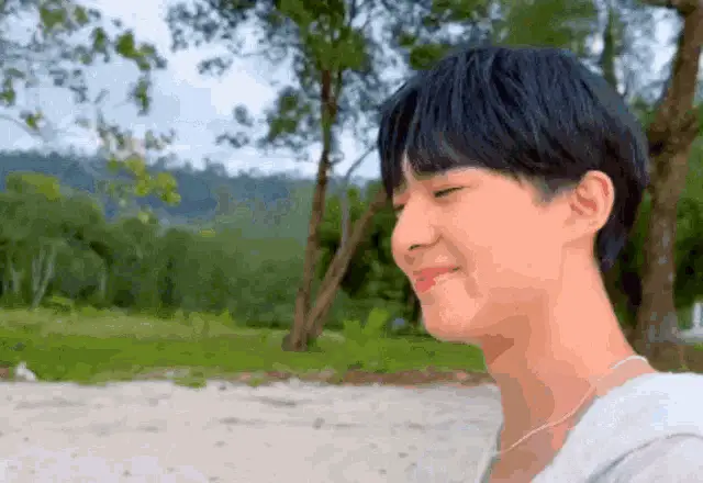 Orn BNK48, a member of the Thai idol group, smiling brightly and looking to the side.