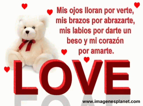 A teddy bear sits in front of a message with hearts, conveying themes of love and affection.
