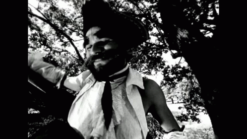 A man with a large fake beard and hat, possibly a pirate from 'Treasure Island' (островсокровищ), points at the camera.