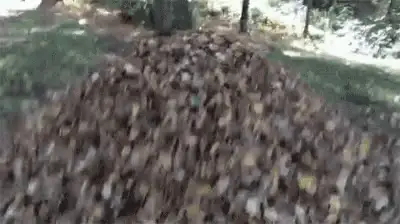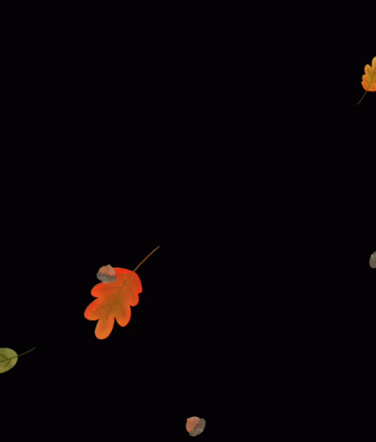 Animated autumn leaves in various colors, including oak leaves and an acorn, falling against a black background.
