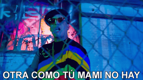 Daddy Yankee performs with the phrase 'Otra Como Tu Mami No Hay' displayed in a vibrant setting.
