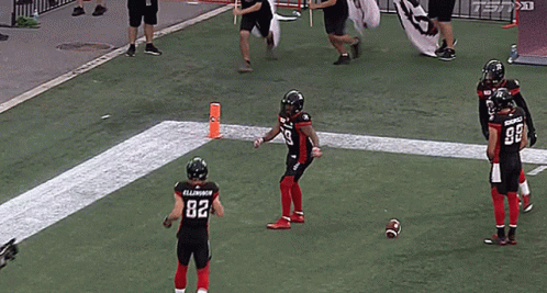 Ottawa Redblacks player William Powell celebrates on the field by performing the floss dance.
