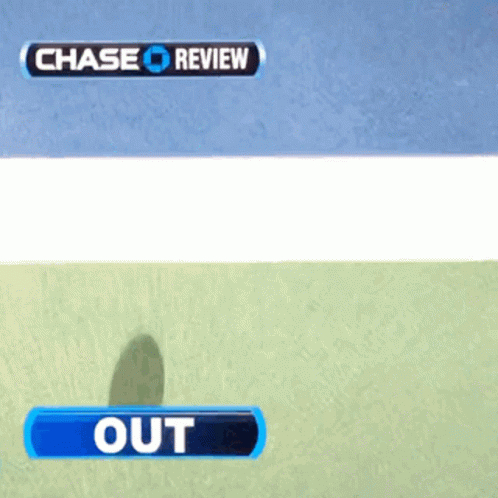 A tennis line call review confirms the ball landed out of bounds, displayed with a 'Chase Review' graphic.