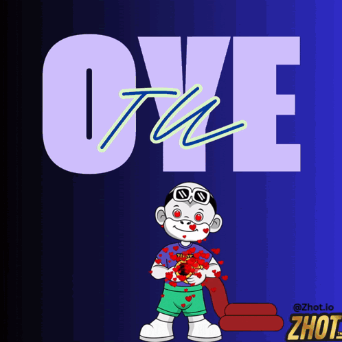 Animated character showering red hearts, with the words 'Oye Tú' prominently displayed in the background.