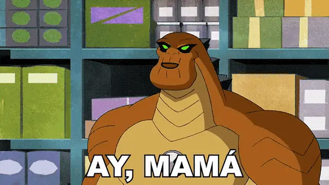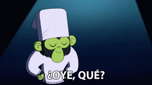Mojo Jojo from The Powerpuff Girls looks surprised, wearing a chef's hat and white robe, saying 'OYE, QUÉ?'.