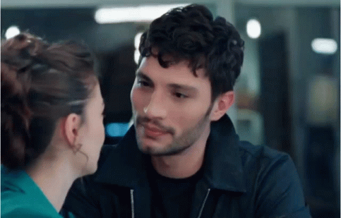 Ozan and Burcu share an intense, romantic gaze, lost in each other's eyes in this emotional scene.