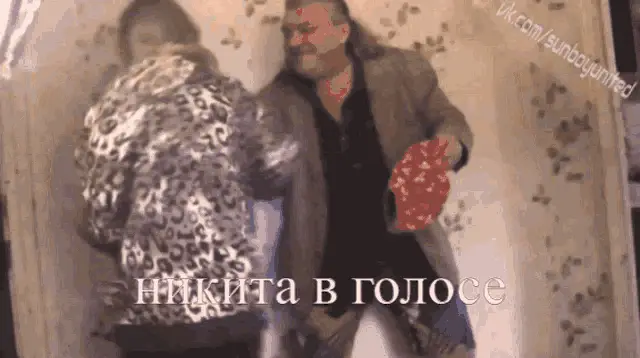 Man in a gym with 'TRAIN EAT' sign and Russian caption 'какнул мальца'.