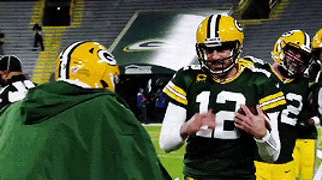 A Green Bay Packers football player shows off his energetic dance moves on the field during a "Dance Cam" segment.
