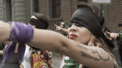 Colectivo Feminista women protest, chanting 'Pacos Culiao' while blindfolded in Chile.