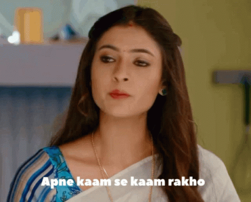 Pallavideshmukh, wearing a saree, delivers the dialogue 'Apne kaam se kaam rakho' (Mind your own business).