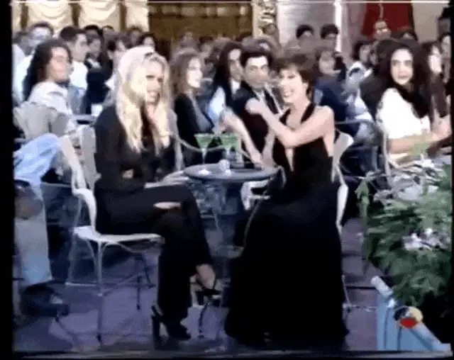 Pamela Chup, in character with sunglasses and a wig, comically exclaims "Ay, no es cierto" (Oh, it's not true).