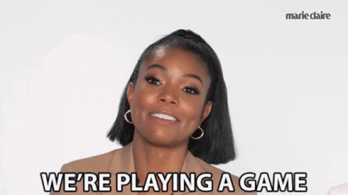 Gabrielle Union announces 'We're playing a game' in a Marie Claire segment, smiling and gesturing.