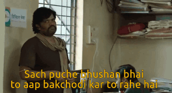 Panchayat meme featuring Bhushan Bhai saying 'Sach puche Bhushan bhai to aap bakchodi kar to rahe hai'.