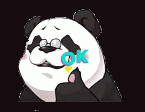A cute cartoon panda wearing glasses gives a thumbs up, with the word 'OK' displayed prominently.