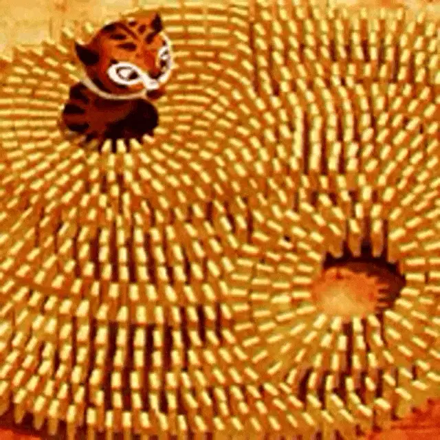 A cute cartoon panda on a red background, with Japanese characters forming 'Take care' and a butterfly flying by.