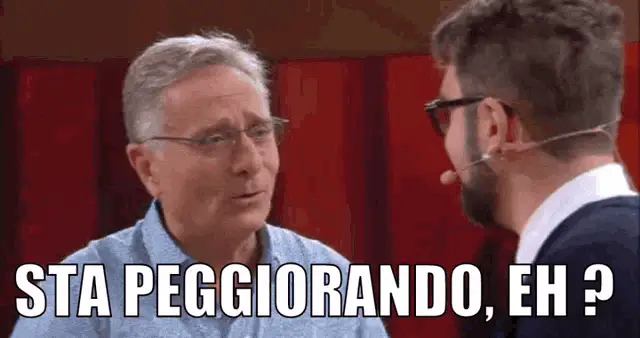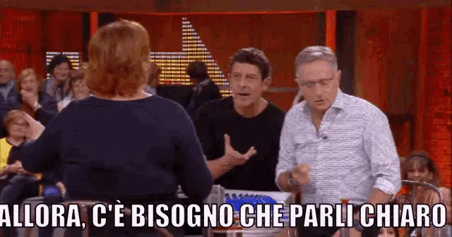 Paolo Bonolis on his show Avanti Un Altro, exclaiming 'Ma dai, su!' with animated gestures.